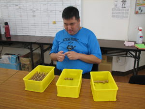 今日のムーンワーカー作業所は、「木製ねじ検品」の作業です。
