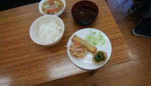 今日の昼食は 八宝菜 春巻き 春雨サラダ 胡瓜の和え物 お味噌汁を食べました。八宝菜がとってもおいしいかったです。ごちそうさまでした。