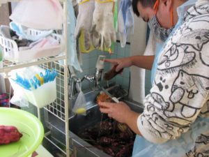 その芋を丁寧に洗っている様子です。