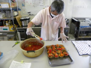 今日の昼食は クリームシチュー ローストポテト おからサラダ 野菜のトマト煮を食べました。ローストポテトが超とっても美味しいかったですよね。ごちそうさまでしたよね。