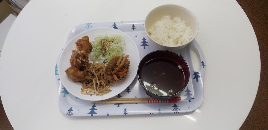 今日の昼食は 鶏の唐揚げ もやしの肉みそ炒め 卵豆腐 きんぴらごぼう お味噌汁を食べました。鶏の唐揚げ丼が超とっても美味しいかったですよね。ごちそうさまでしたよね。