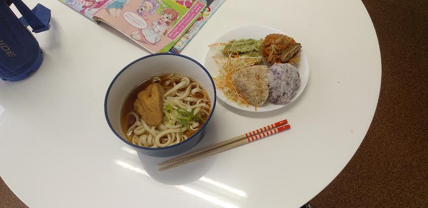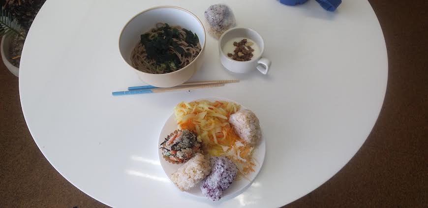 今日の昼食は 蕎麦 野菜の天ぷら おからサラダ おにぎりを食べました。おにぎりが超とっても美味しいかったですよね。ごちそうさまでしたよね。