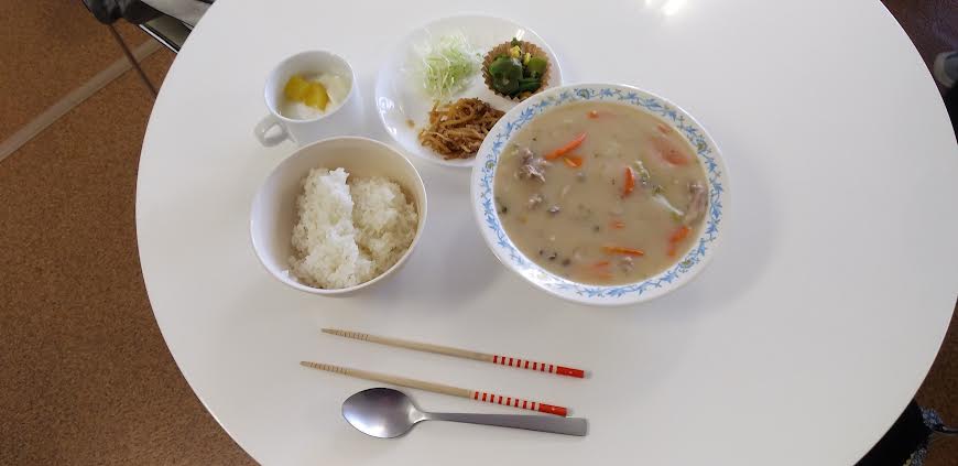 今日の昼食は クリームシチュー もやしの肉みそ炒め ピーマンとツナの和え物 フルーツヨーグルトを食べました。もやしの肉みそ炒めとピーマンとツナの和え物が超とっても美味しいかったですよね。ごちそうさまでしたよね。