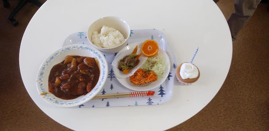 今日の昼食は 煮込みハンバーグ 蒸し野菜 人参サラダ 果物を食べました。煮込みハンバーグ丼が超とっても美味しいかったですよね。ごちそうさまでしたよね。