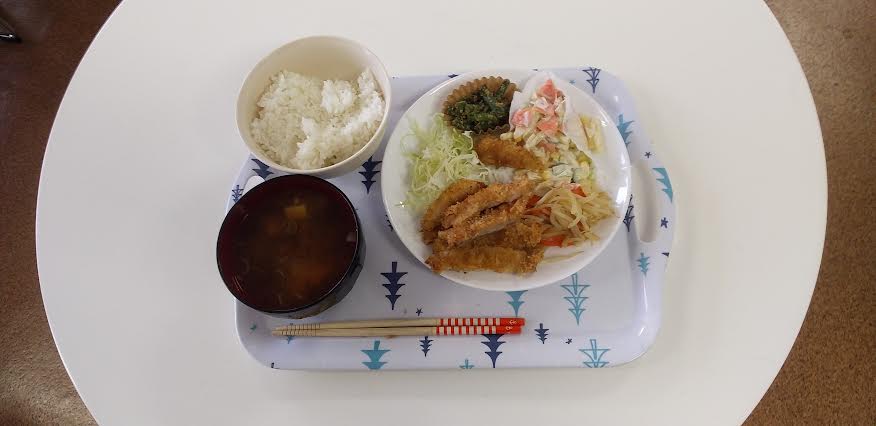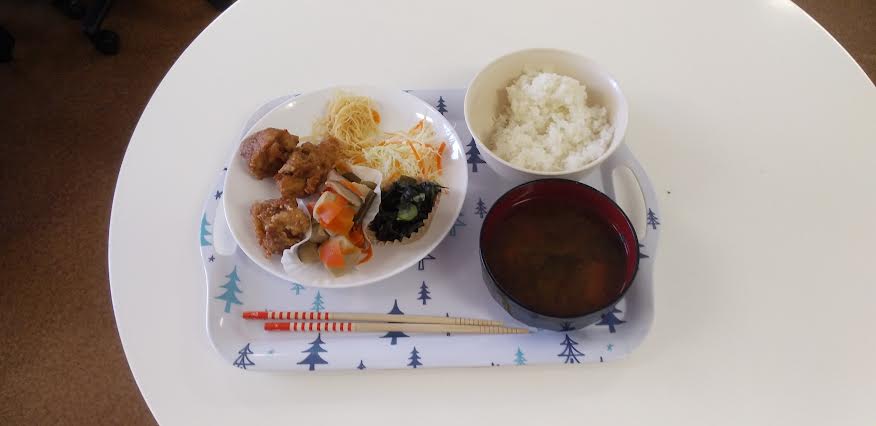 今日の昼食は 鶏の唐揚げ 焼きビーフン 胡瓜とわかめの酢の物 高野豆腐の煮物 お味噌汁を食べました。鶏の唐揚げ丼が超とっても美味しいかったですよね。ごちそうさまでしたよね。