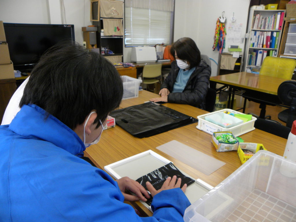袋をきれいに畳んでいます。