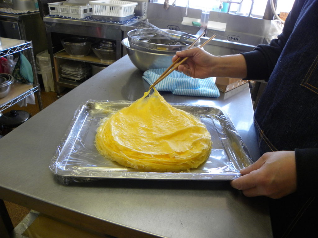 今日の昼食はオムライスなので薄い卵焼きを作りました。