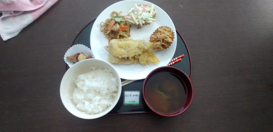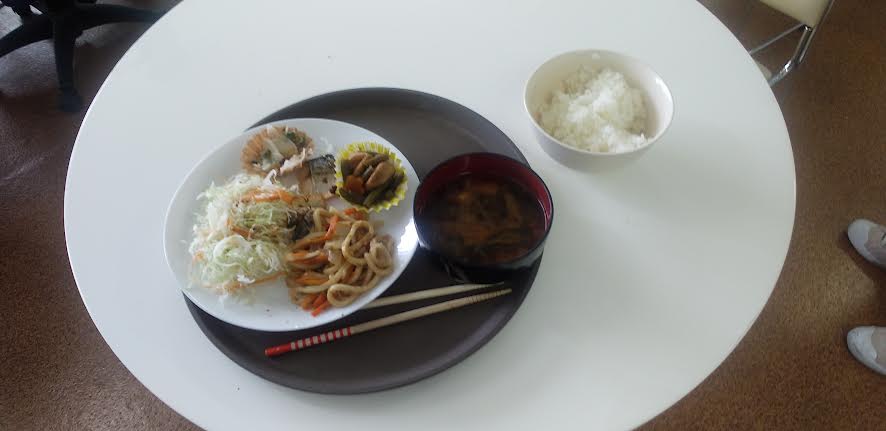 今日の昼食は サバの塩焼き 焼うどん がんもの煮物 大根の梅和え お味噌汁を食べました。焼うどん丼が超とっても美味しいかったですよね。ごちそうさまでしたよね。