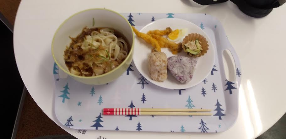 今日の昼食は 冷やしきしめん きのこのフリット 棒棒鶏サラダ おにぎりを食べました。冷やしきしめんが超とっても美味しいかったですよね。ごちそうさまでしたよね。