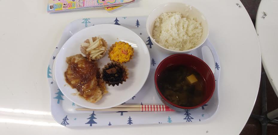 今日の昼食は 豚の生姜焼き かに玉の卵とじ ひじき煮物 ゆず大根 お味噌汁を食べました。豚の生姜焼き丼が超とっても美味しいかったよね。ごちそうさまでしたよね。