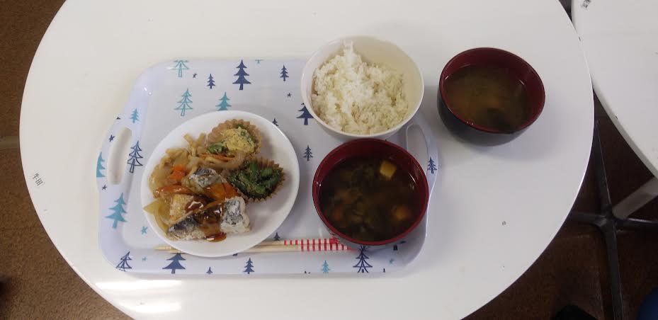 今日の昼食は 鯖の竜田揚げ 焼きうどん ツナと白菜の卵とじ いんげんの胡麻和え お味噌汁を食べました。焼きうどん丼が超とっても美味しいかったよね。ごちそうさまでしたよね。