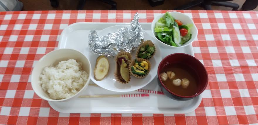 今日の昼食は 白身魚のホイル包み焼き ニラ玉炒め オクラお浸し さつまいもの甘煮 お味噌汁を食べました。白身魚のホイル包み焼き丼が超とっても美味しいかったよね。ごちそうさまでしたよね。
