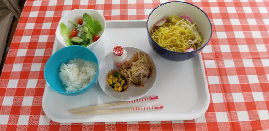 今日の昼食は 味噌ラーメン 肉野菜炒め ピーマンとツナの和え物を食べました。味噌ラーメンと肉野菜炒め丼とピーマンとツナの和え物が超とっても美味しいかったよね。ごちそうさまでしたよね。