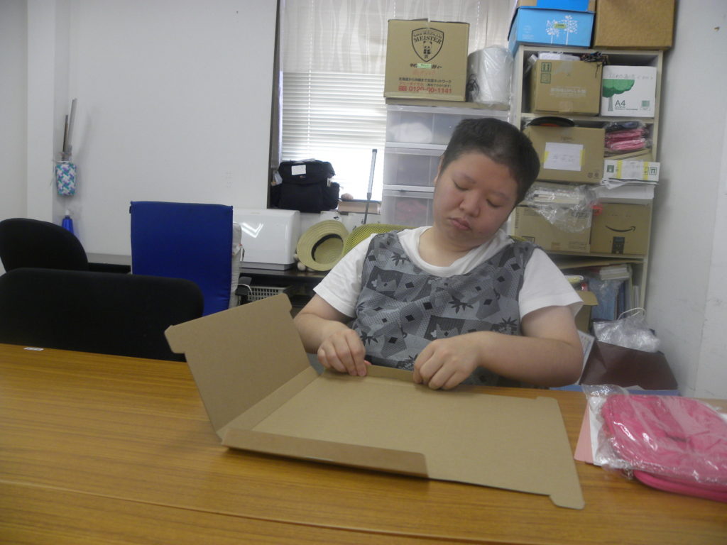 メルカリに出品した化粧ポーチの箱詰め作業を